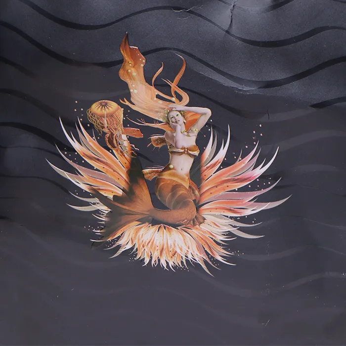 في السابق، كان اللمعان المعدني والملمس الناعم مرتبطًا غالبًا بختم الرقائق الساخنة. ومع ذلك، تستخدم حقيبة تسوق الملابس هذه بشكل مبتكر عملية الطباعة والنقش، لتحل محل ختم الرقائق الساخنة التقليدي لخلق تجربة بصرية وملموسة جديدة. تسمح الطباعة والنقش بمزيد من تدرجات الألوان. يمكن للعملاء تخصيص ألوان الطباعة والتشطيبات غير اللامعة أو اللامعة والتأثيرات الشفافة أو المتدرجة، على عكس ختم الرقائق الساخنة التقليدي الذي يقتصر على رقائق محددة من الذهب أو الفضة أو النحاس أو الألوان. تسمح الطباعة والنقش بتركيبات متعددة الألوان. كما تمنح عملية النقش النص أو الشعارات أو الأنماط تأثيرًا ثلاثي الأبعاد، مما يزيد من تفاعل العبوة.